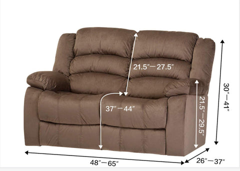 2 SeaterBottom length48-65 INCH, Bottom width 26-37 INCH, Height 30-41 INCH, Top length 48-65 INCH.